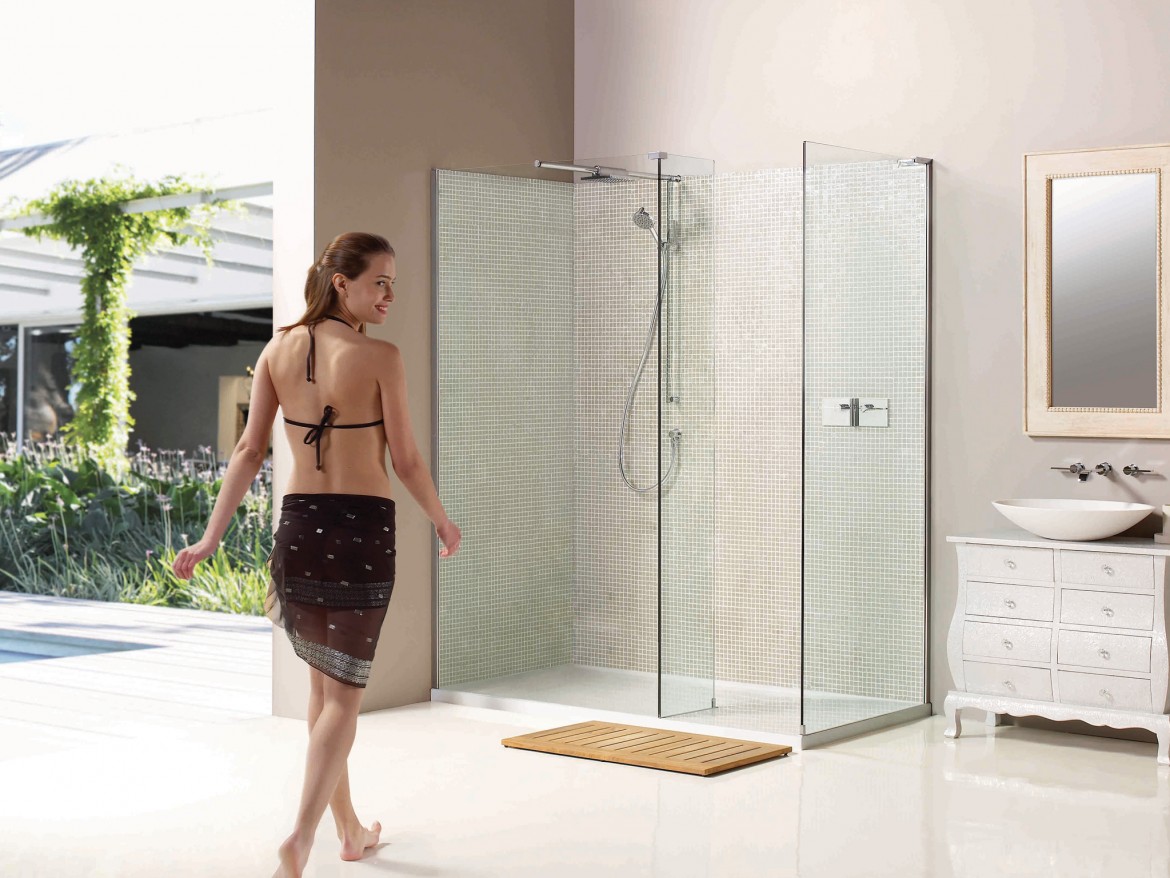 Effortlessly luxurious and hand-crafted, the Boutique Walk-In Corner surround is created almost entirely from glass, which fits perfectly into a groove in the uniquely styled tray. This eliminates the need for silicon sealant where glass meets tray. The deluge shower and hand shower options are an integral part of the sleek shower assembly whilst the thermostatic shower valve/mixer can be conveniently positioned so that it can be controlled from outside the shower. The Boutique Corner is available with side panel (NWCC) or without (NWSC) and with hinged panel click here to view
